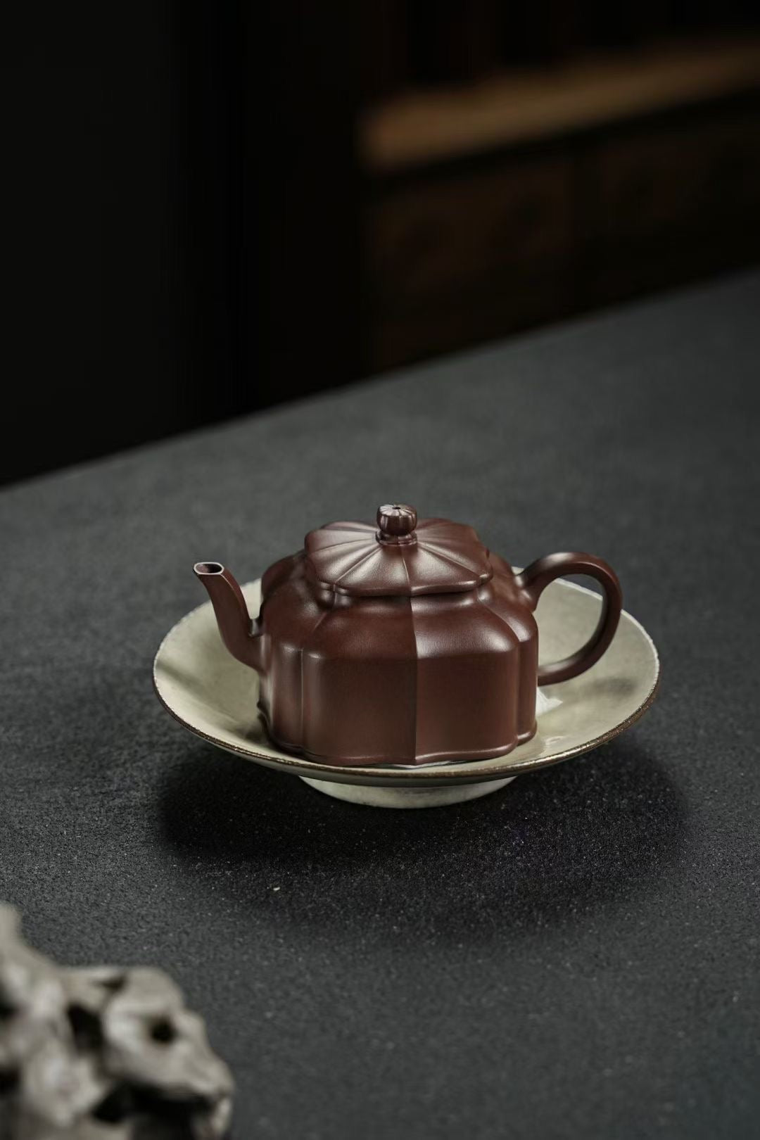 古雅な風合いをたたえる老紫泥を用い、深みのある潤いと光沢を備えた逸品です。