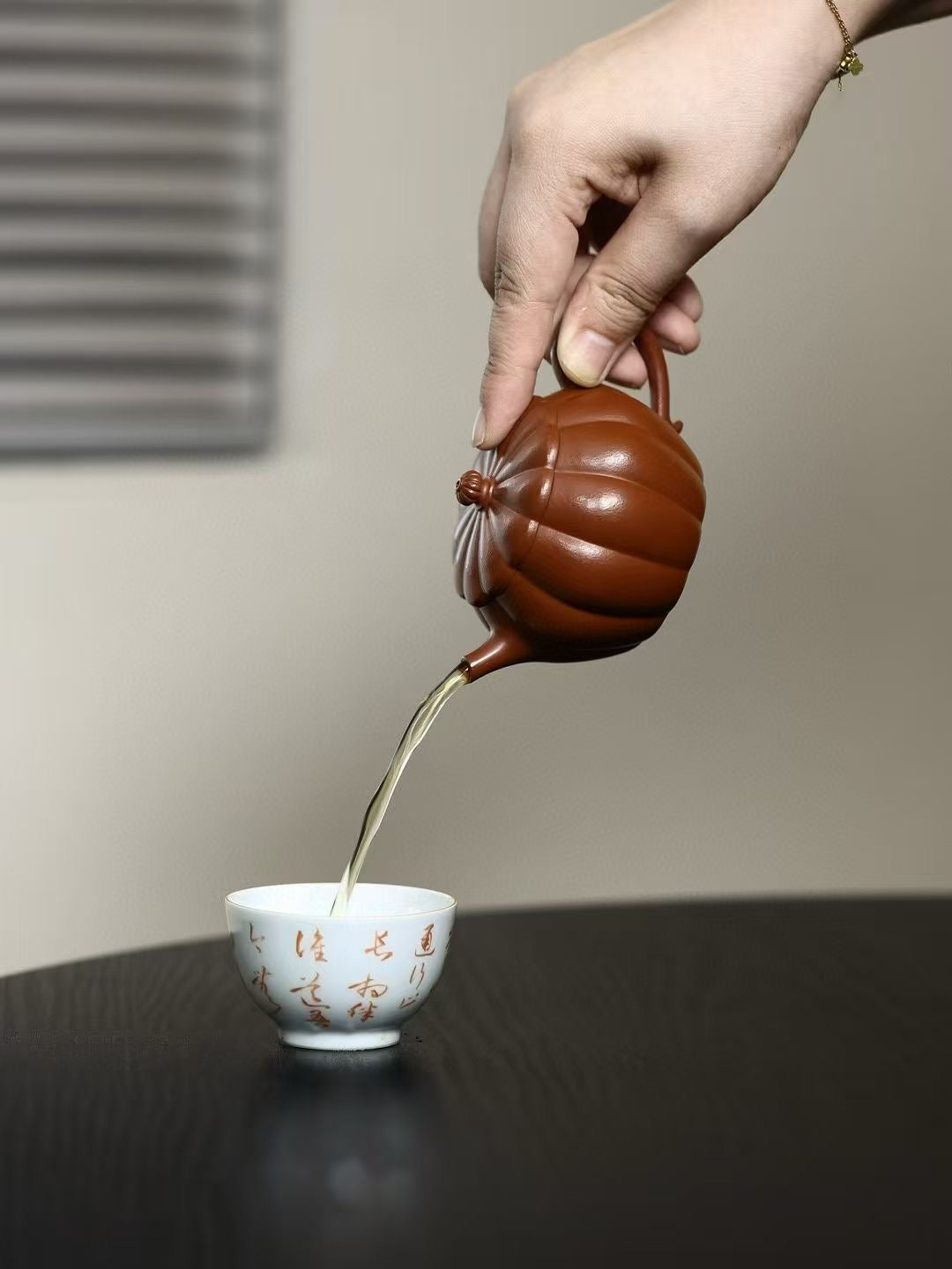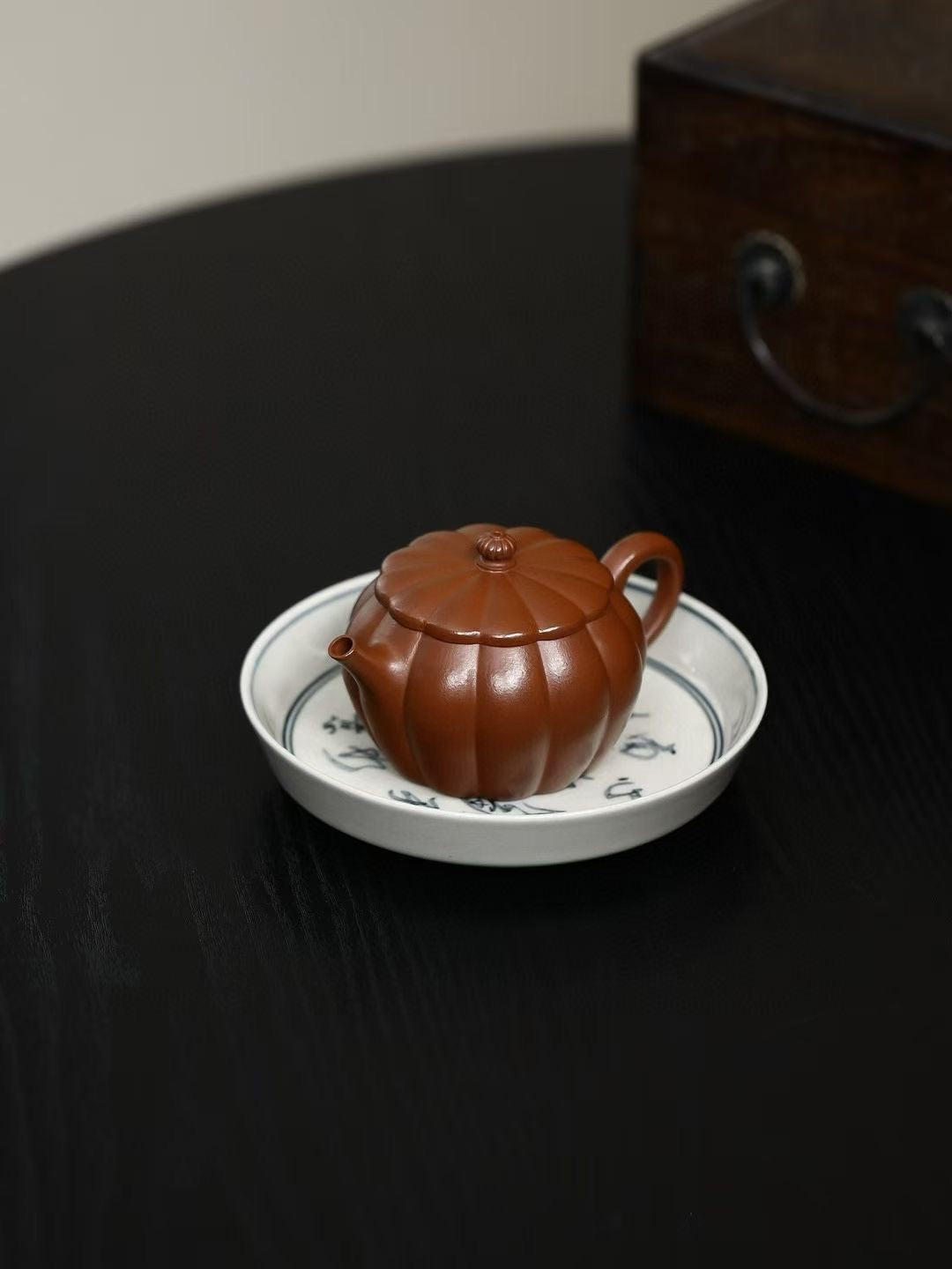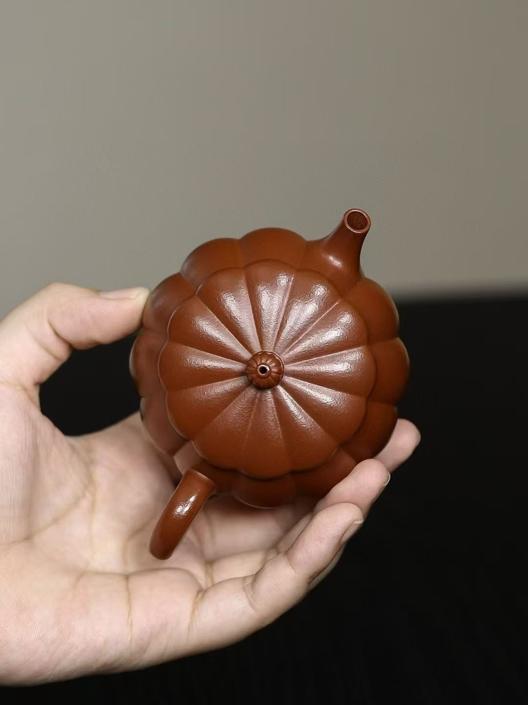 「筋紋錦鼓」は、伝統的な太鼓の姿を模した優美な造形が特徴の紫砂壷です。緻密に刻まれた筋紋が均整の取れた美しさを生み、手に取るたびに職人の高度な技術を感じさせます。